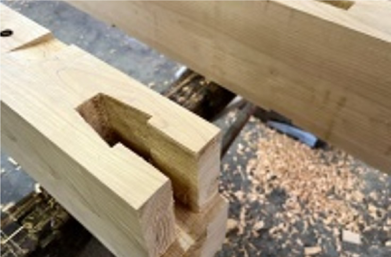 私たちは、日本の歴史的建造物に使われる伝統技術を大切にしています。 プレカット(機械による加工)が当たり前の現代において、大工が木材一本一本の癖を見極め、手で加工する「墨付け」「手刻み」ができる職人は、少なくなってきています。