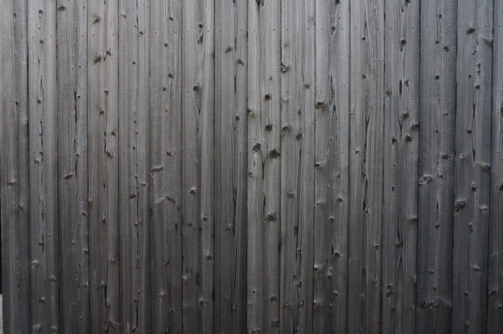 焼杉とは、その名の通り「杉の板の表面を焼いて炭化させ、乾燥させたもの」。