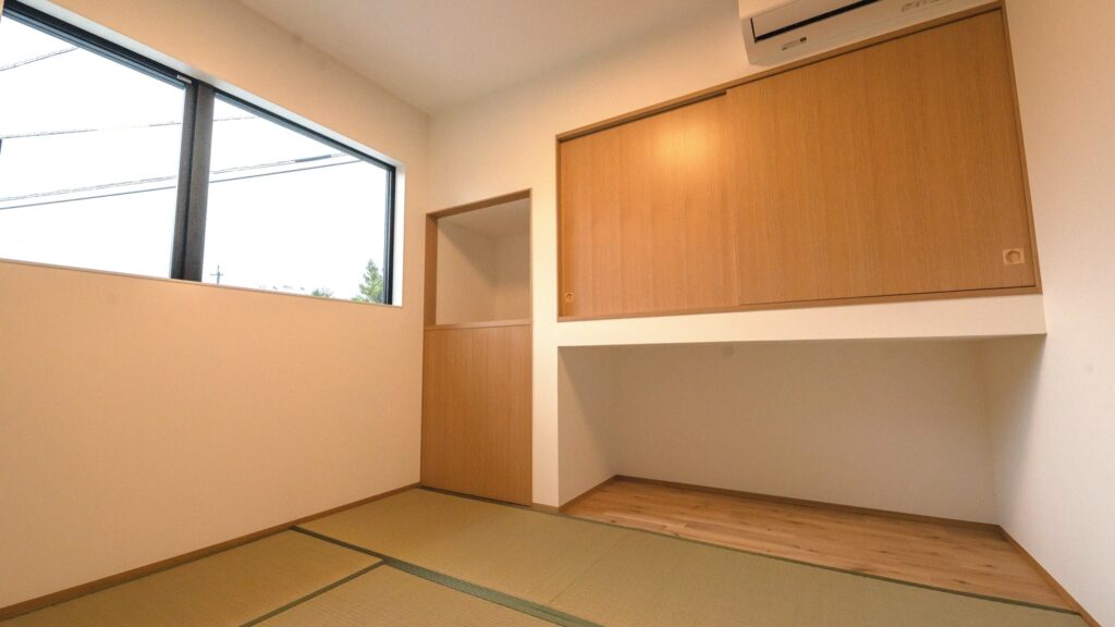 一階の客間としても使える和室には、お仏壇がジャストサイズで収まる仏間もつくっています。その隣には、五月人形や羽子板など、お子さんの成長を祝う品々を置いたり、季節の飾り付けができる床の間も。伝統的な和室の機能とモダンなデザインがバランスよく融合した空間となりました。