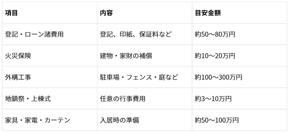 「建築費+諸費用+外構費」で予算の1〜2割ほどの余裕を見ておくと安心です。