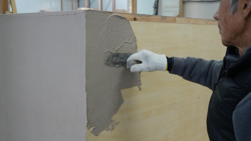 現場では、コテの動きひとつで質感が変わっていく様子がとても印象的で、