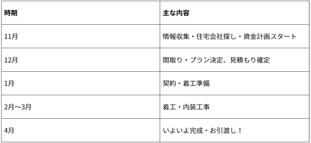 11月から動けば間に合う!山陰で春入居のための家づくりスケジュールガイド